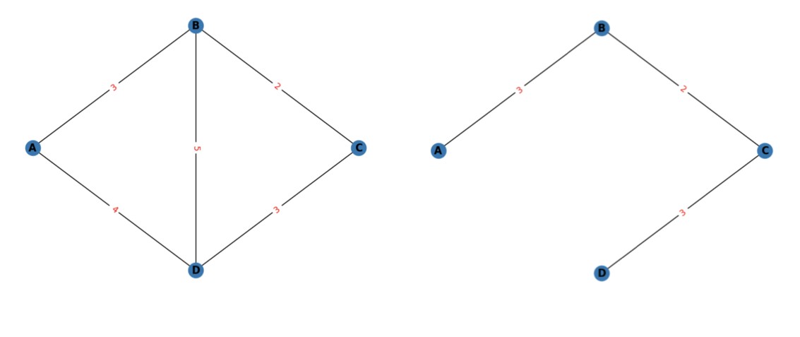 Suppose we want to find the minimum spanning tree of the left graph subject to a maximum degree constraint 3.